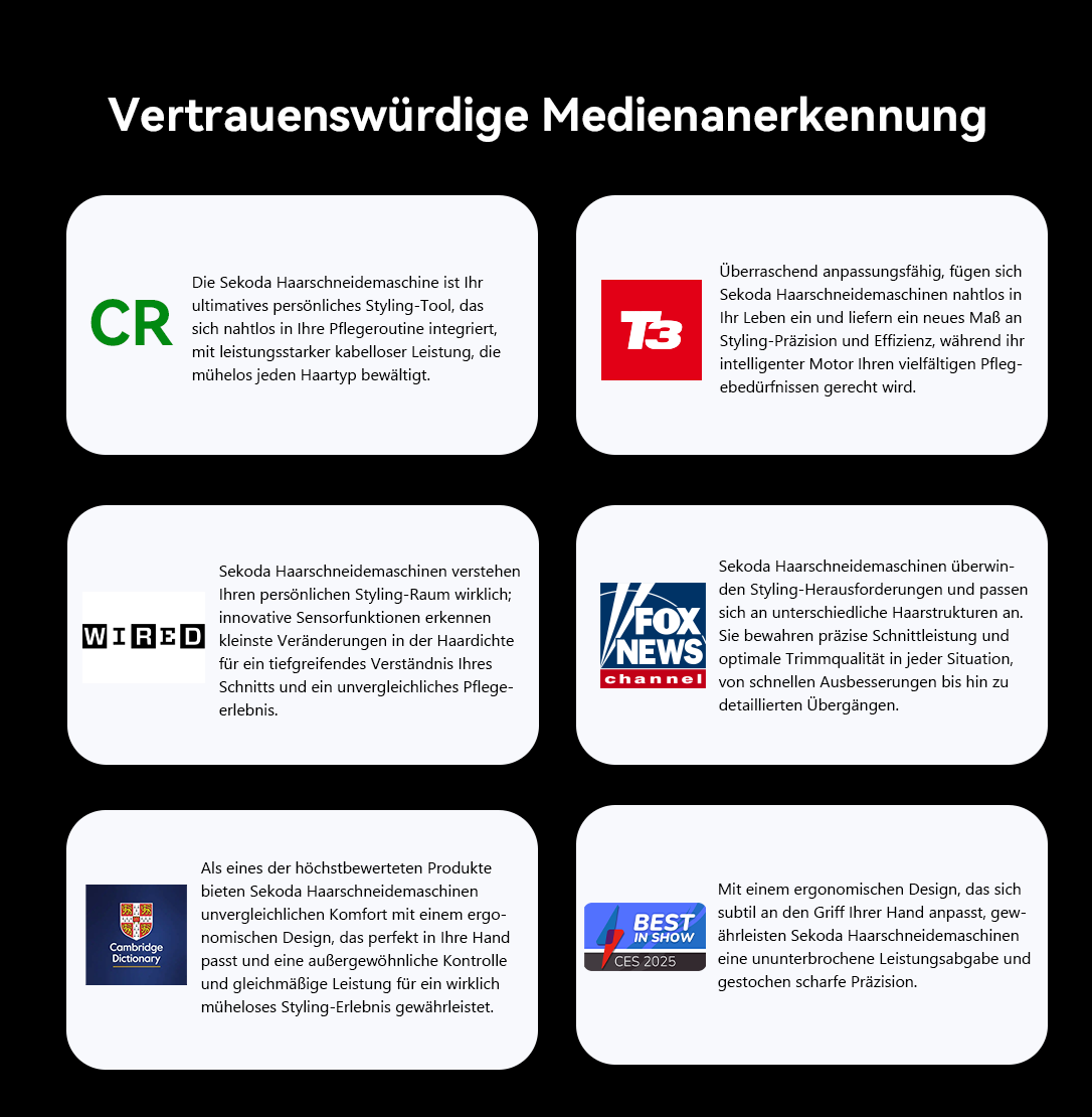 - Skin-Safe Design - R-förmige, abgerundete Klinge für bequeme, reizfreie Schnitte.